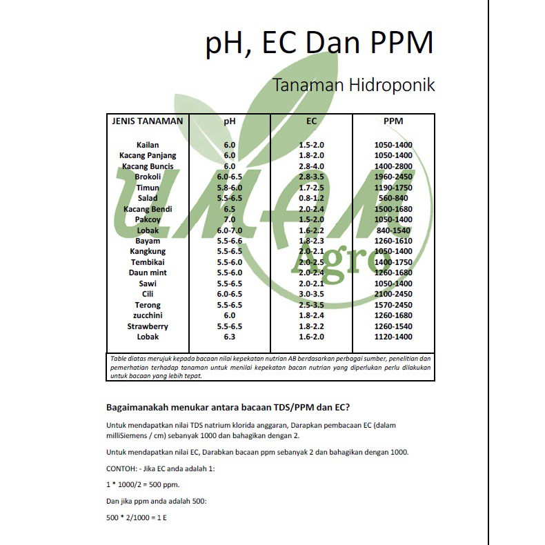 Tabel PPM Hidroponik Untuk 80 Jenis tanaman Konversi EC ke PPM Tanpa Alat List dan Tabel ppm hidroponik Tabel ppm hidroponik untuk berbagai jenis tanaman bisa. Alat ukur PPMEC ini sangat berguna dalam berkebun.
